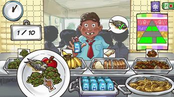 - You play as a "kakak" working at a school canteen SERVING BALANCED NUTRITIONAL MEALS to children during recess.